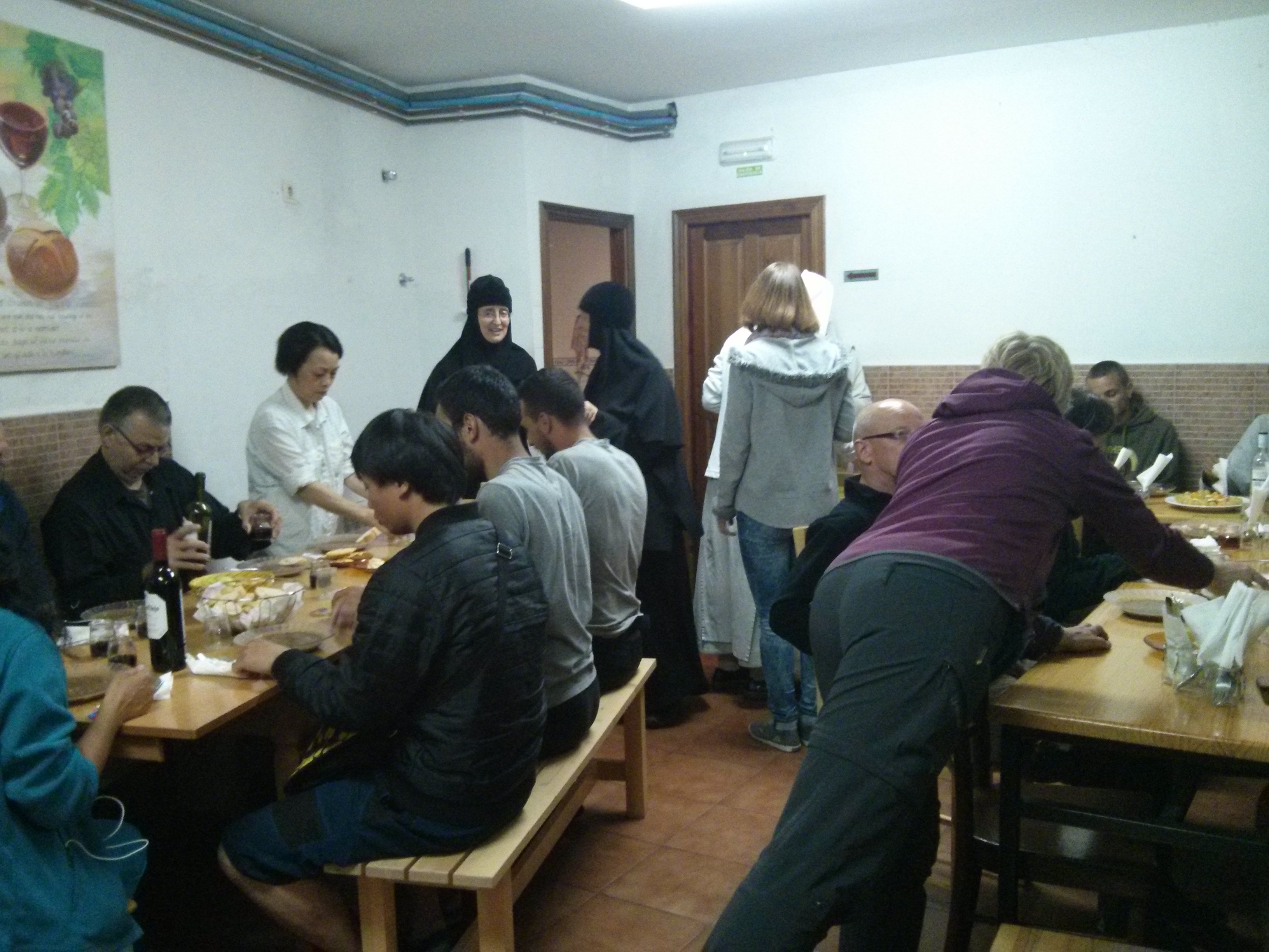 בשעה 21:00 יש ארוחה משותפת שהוכנה במהלך שעות הערב על-ידי הנזירות והצליינים במטבח האלברגה, וזאת באמצעות מצרכים שתרמו הצליינים. גם ארוחה זו כללה ברכות ושירים.