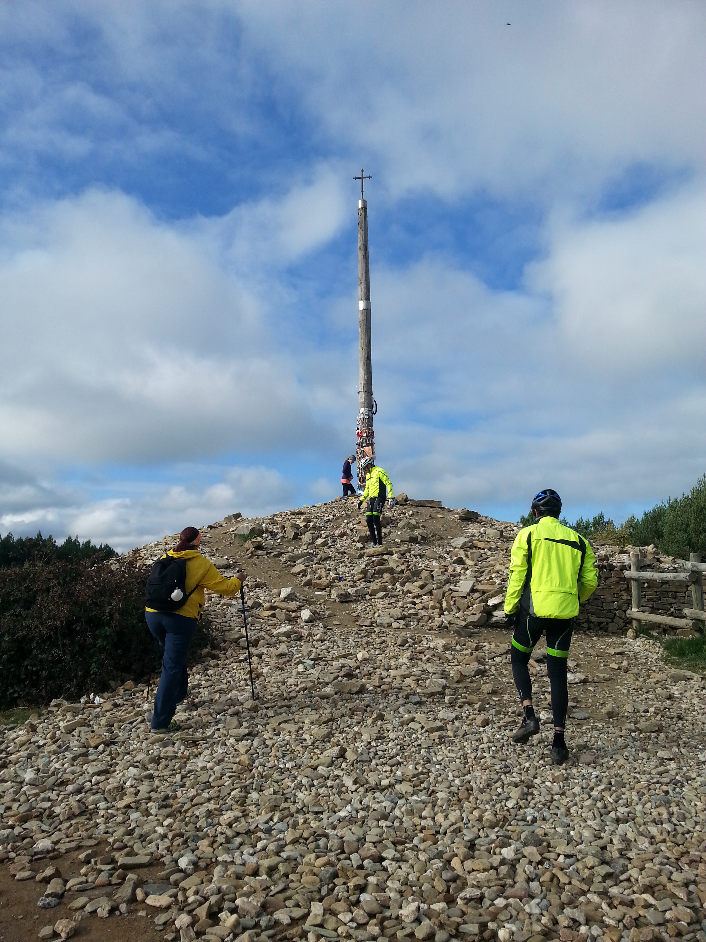 08.10.2016. בבוקר ענבר לא הרגישה מספיק טוב כדי ללכת הליכה רגילה. לכן החלטנו לצעוד ללא תיקים כשני קילומטרים עד ל-Cruz de Ferro, ואחר כך לנסוע במונית ל-Ponferrada.